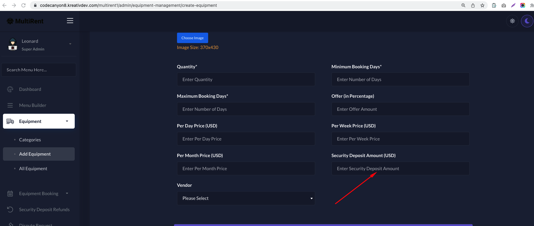 Admin can set commission percentage for each Equipment bookings. Vendors can withdraw their earnings. Admin can also charge on the withdrawals too